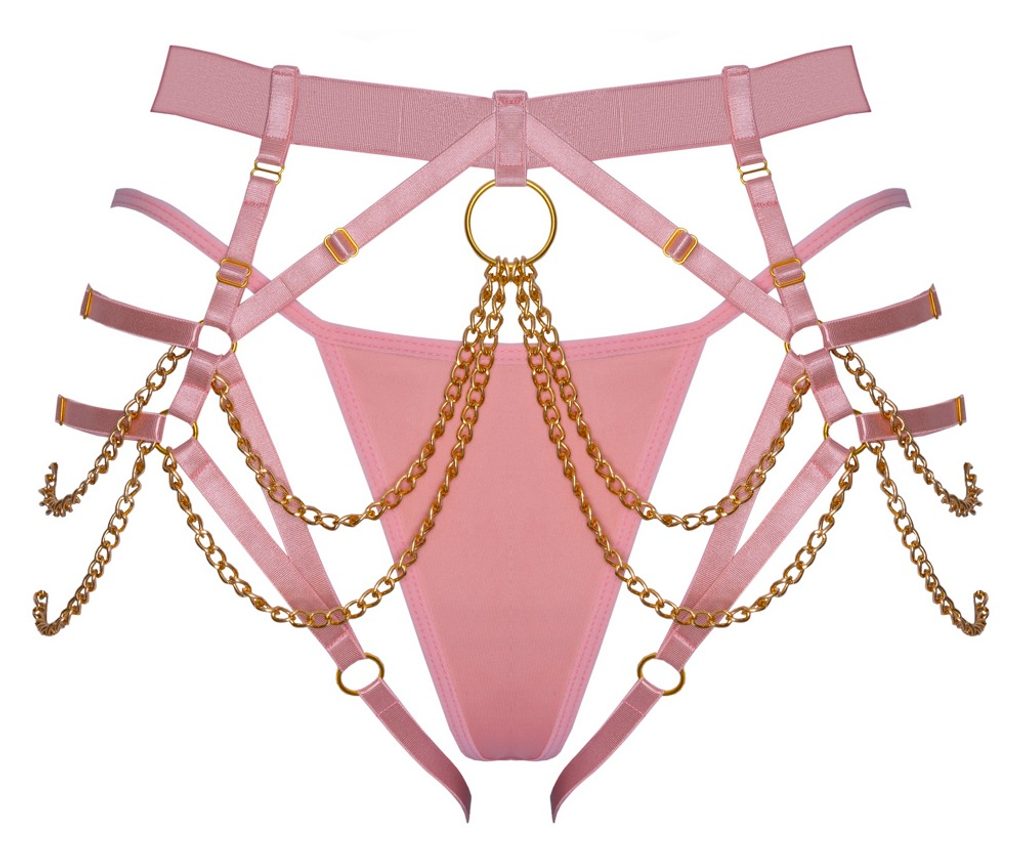 Harness string z verižicami – rožnati dragulj za drzne trenutke