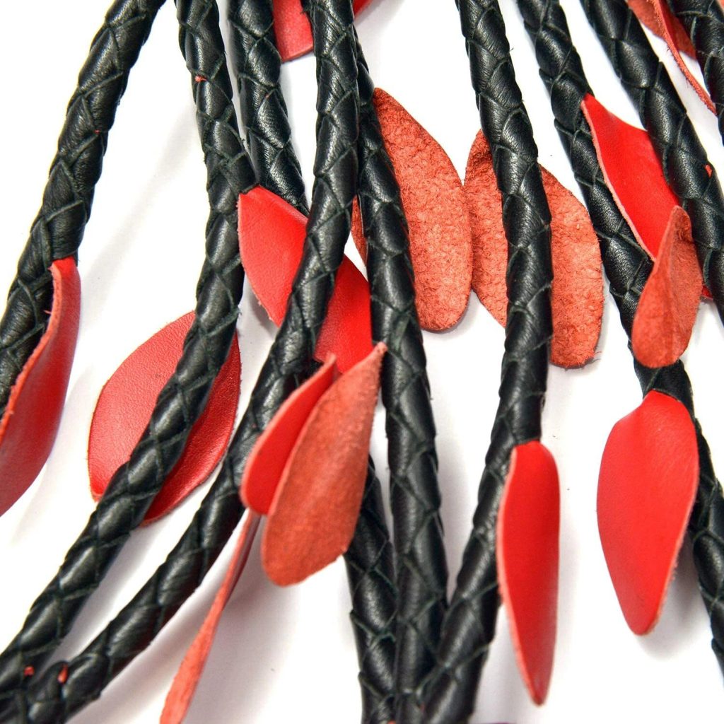 Luksuzen usnjen bič, izdelan po naročilu, z resicami v obliki vrtnice.