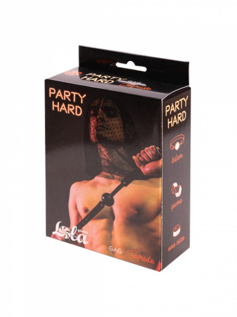 Gag iz kolekcije »Party Hard« je primeren za začetnike in izkušene uporabnike. Pašček je izdelan iz PVC brez ftalatov, kroglica pa iz plastike. Gag je dolg 64,5 cm in ustreza vsaki velikosti. Izdelan v črni barvi. Širina je približno 4,5 cm.