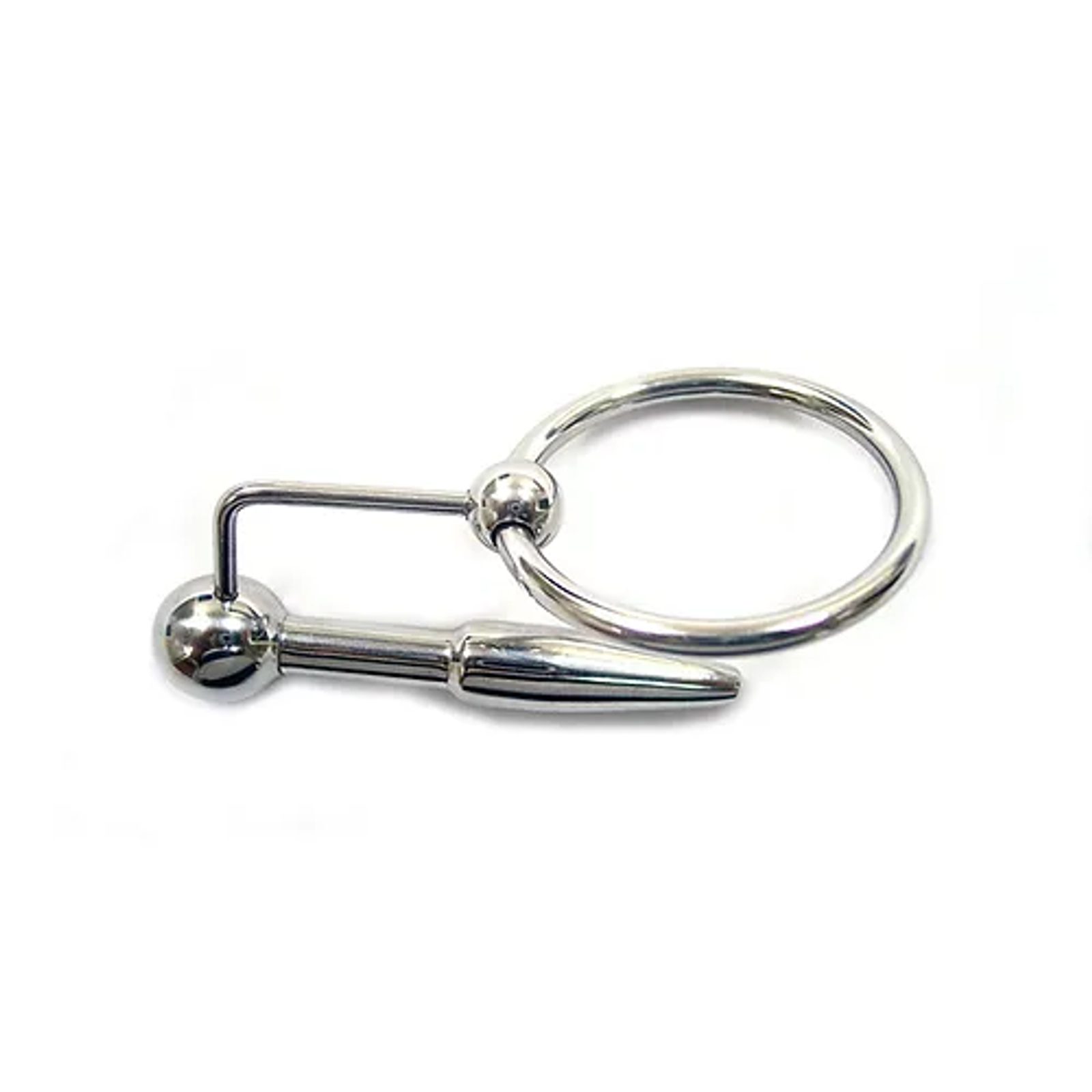 Uretralni čep in obroček za penis znamke Rouge, izdelan iz telesu varnega nerjavečega jekla. Zasnovan za sondiranje; njegov obroček se popolno zaskoči pod glavico vašega penisa, kar mu omogoča, da lepo ostane na mestu tako dolgo, kot želite.