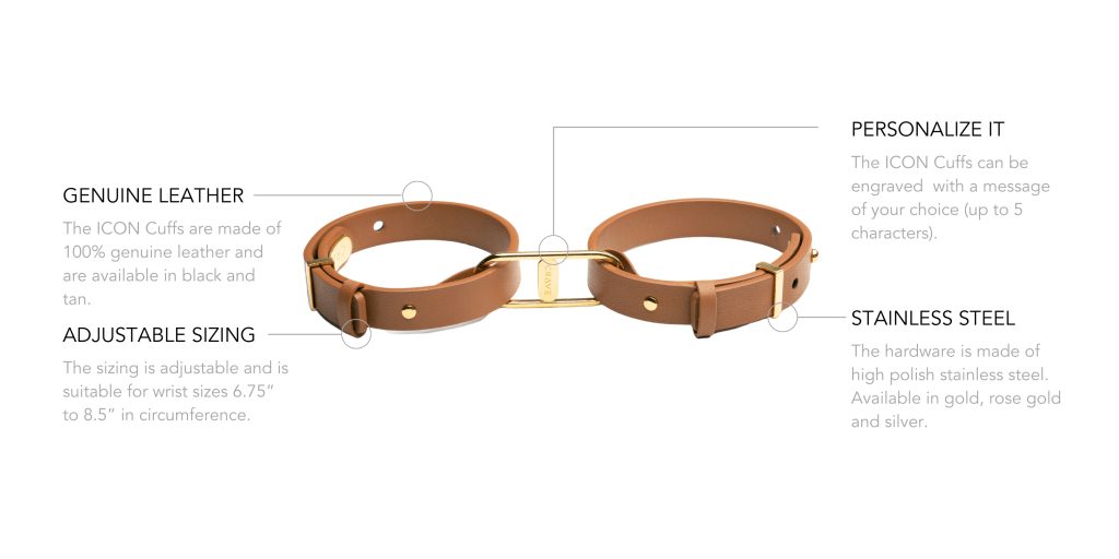 ICON Cuffs ponujajo eleganten videz modnega dodatka, ki se v trenutku spremeni v diskretne erotične manšete. Idealne so za tiste, ki želijo združiti dizajn, simboliko in lahkotno BDSM igro v enem izdelku.