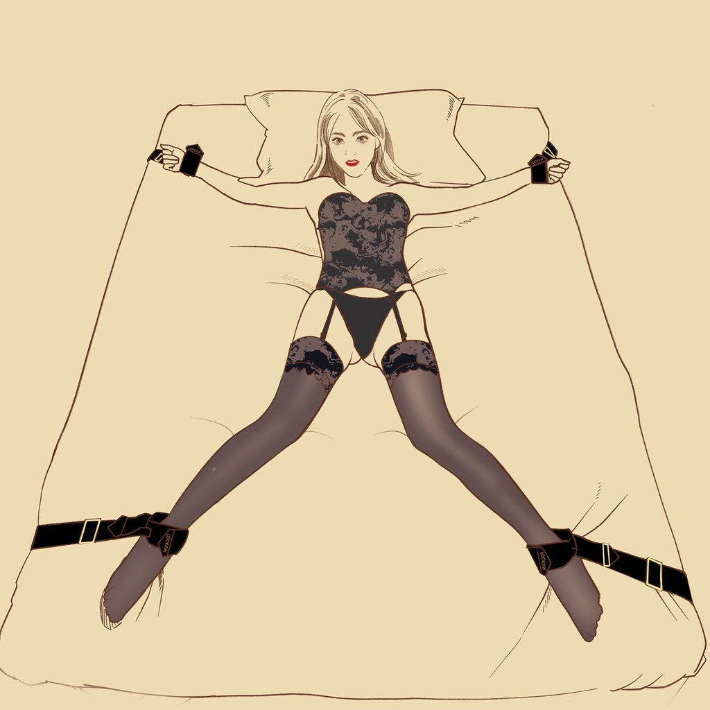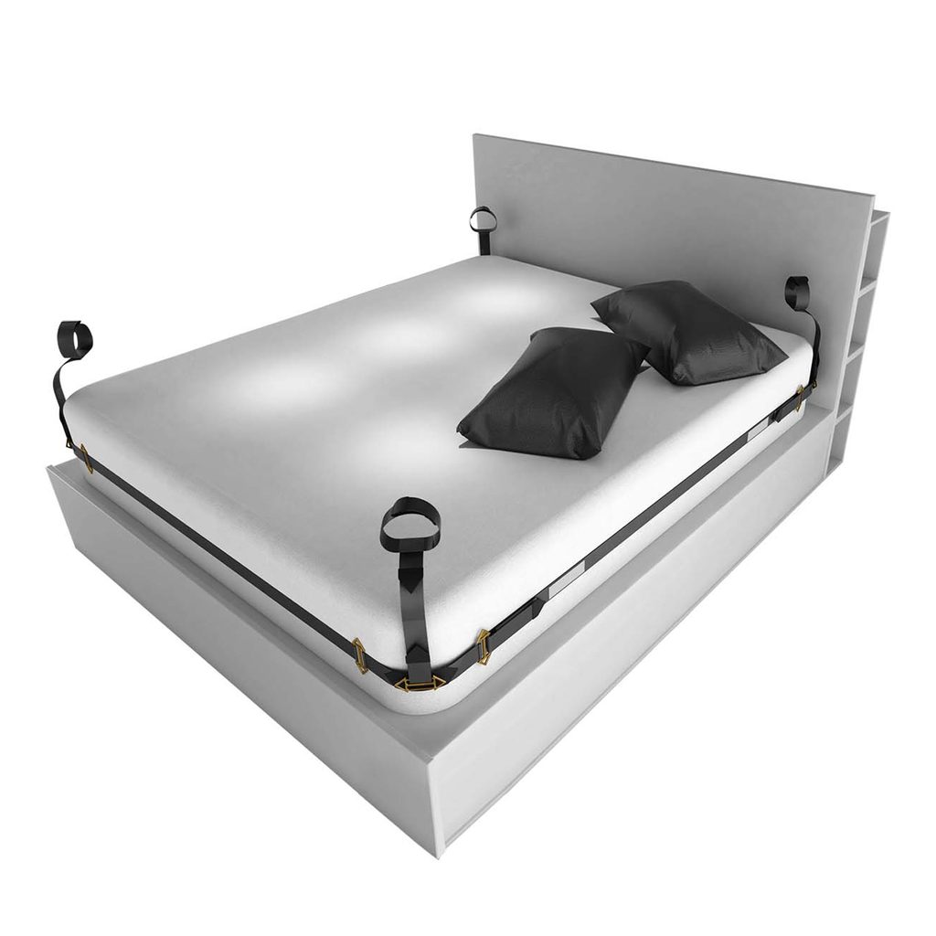 Idealni komplet lisic za posteljo za vznemirljivo noč znamke LOCKINK! Poleg tega pritrditev tega kompleta na vzmetnico ni več težava. Komplet je primeren za vzmetnice širine od 1,5 m do 2 m. V kompletu je tudi razporka za noge. Veliko komponent je nastavljivih, zato lahko uživate vi in vaš partner! Mere si oglejte na sliki.