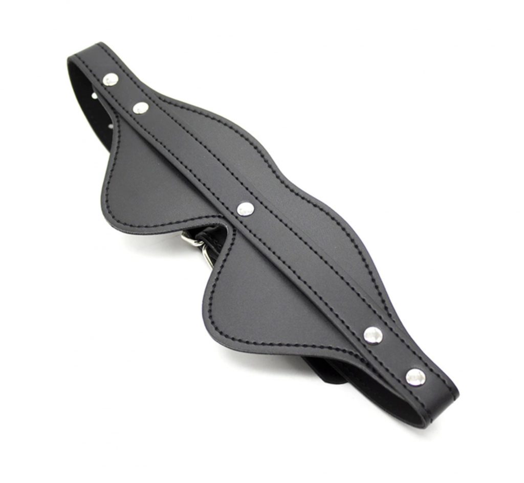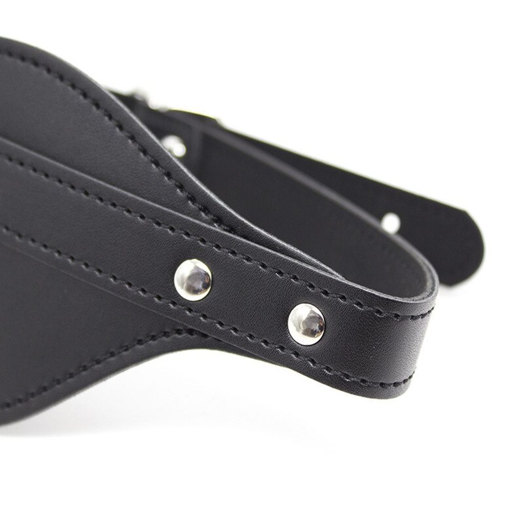 Seksi maska za oči je v črni barvi, dopolnjena s kovinsko zaponko in aplikacijami iz nerjavečega jekla.