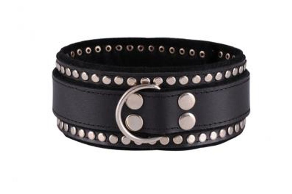 Ovratnik je okrašen s kovicami in podložen s črnim filcem, ki preprečuje odtise in praske.