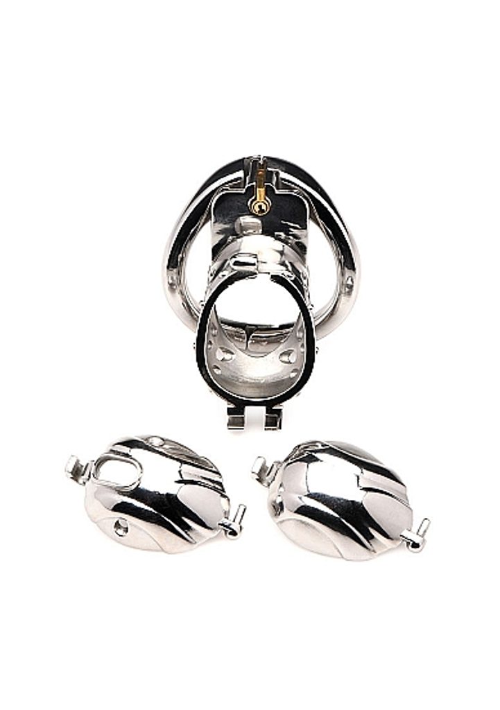 Imejte svojo submisivno psičko pod nadzorom s to vznemirljivo kletko čistosti znamke Master Series. Trpežna kletka ima udobno in varno zasnovo, je lahka in hipoalergena ter zagotavlja optimalno prezračevanje za vašo higieno. Kletka za penis je dobavljena z 2 različnima velikostma obročkov in 2 različnima ventiloma, tako da jo lahko prilagodite svojim individualnim meram. Set vključuje rezervne ključe. Kletka za penis vam prepreči, da bi se dotikali, in vam zagotavlja maksimalen nadzor. Material je odporen proti koroziji in se enostavno čisti s toplo vodo in čistilom za igrače. Kletko za penis lahko uporabljate s katerokoli vrsto lubrikanta.