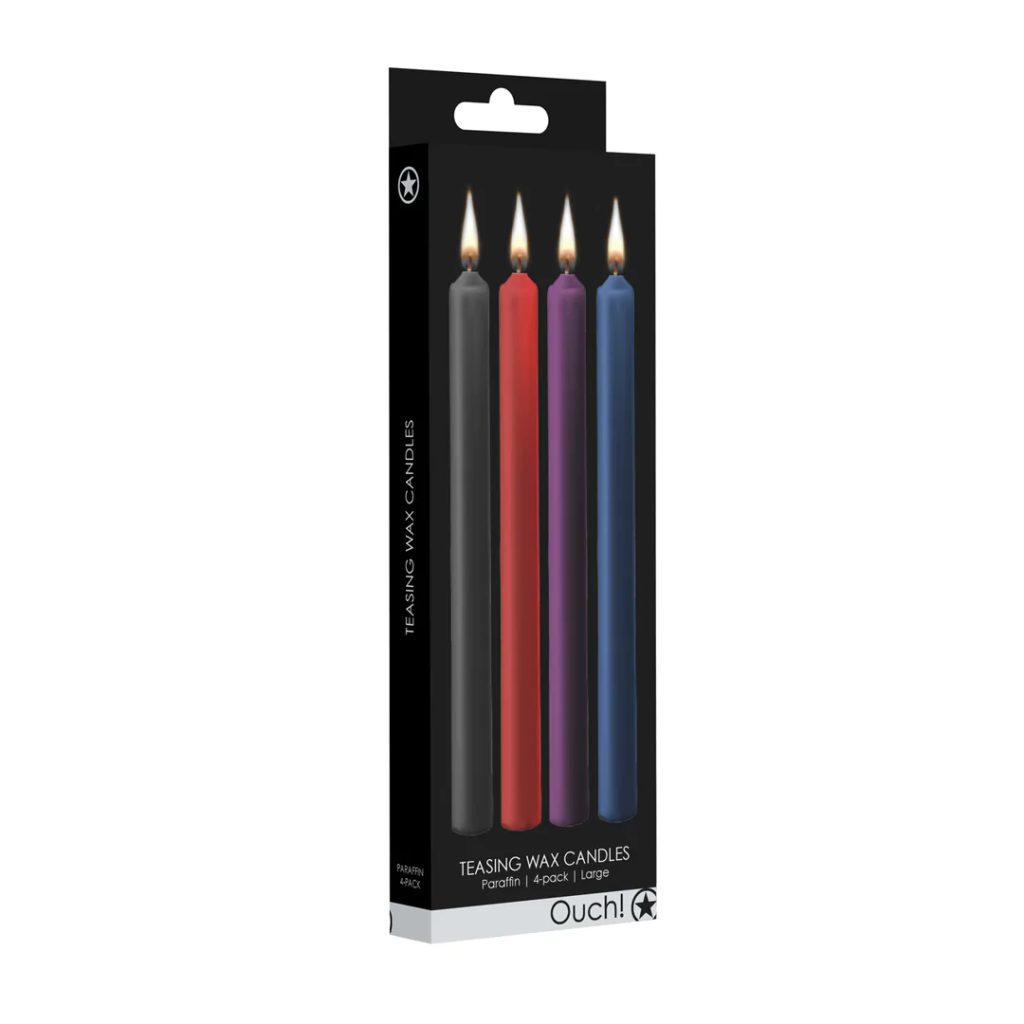 Sada svíček Ouch! Candle Set přináší do intimních her vizuální efekt i smyslový rozměr. Barevný vosk se pomalu rozpouští a umožňuje vytvářet originální obrazce na těle partnera – ideální pro experimentování s teplotou, kontrastem i estetikou. Vosk je vhodné aplikovat na záda, ramena, stehna či hýždě a vždy se vyhnout obličeji a očím. Než začnete, doporučuje se domluvit si bezpečné slovo a hranice.