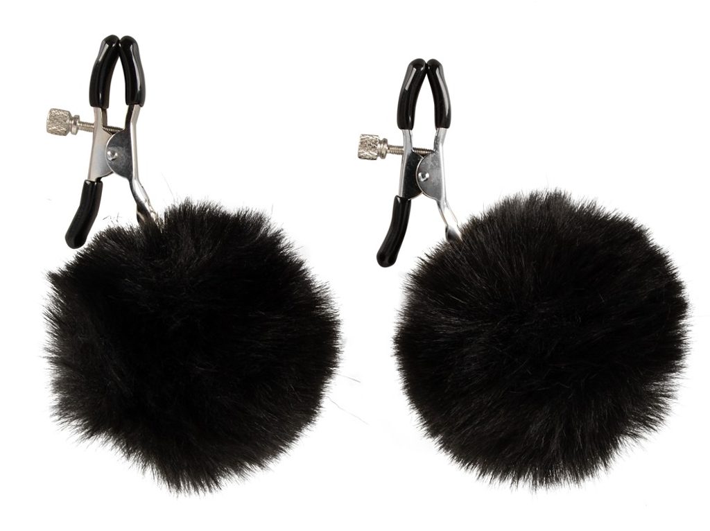 Kovinske sponke za bradavice s črnimi cofki – luksuzen nakit s kančkom vznemirjenja