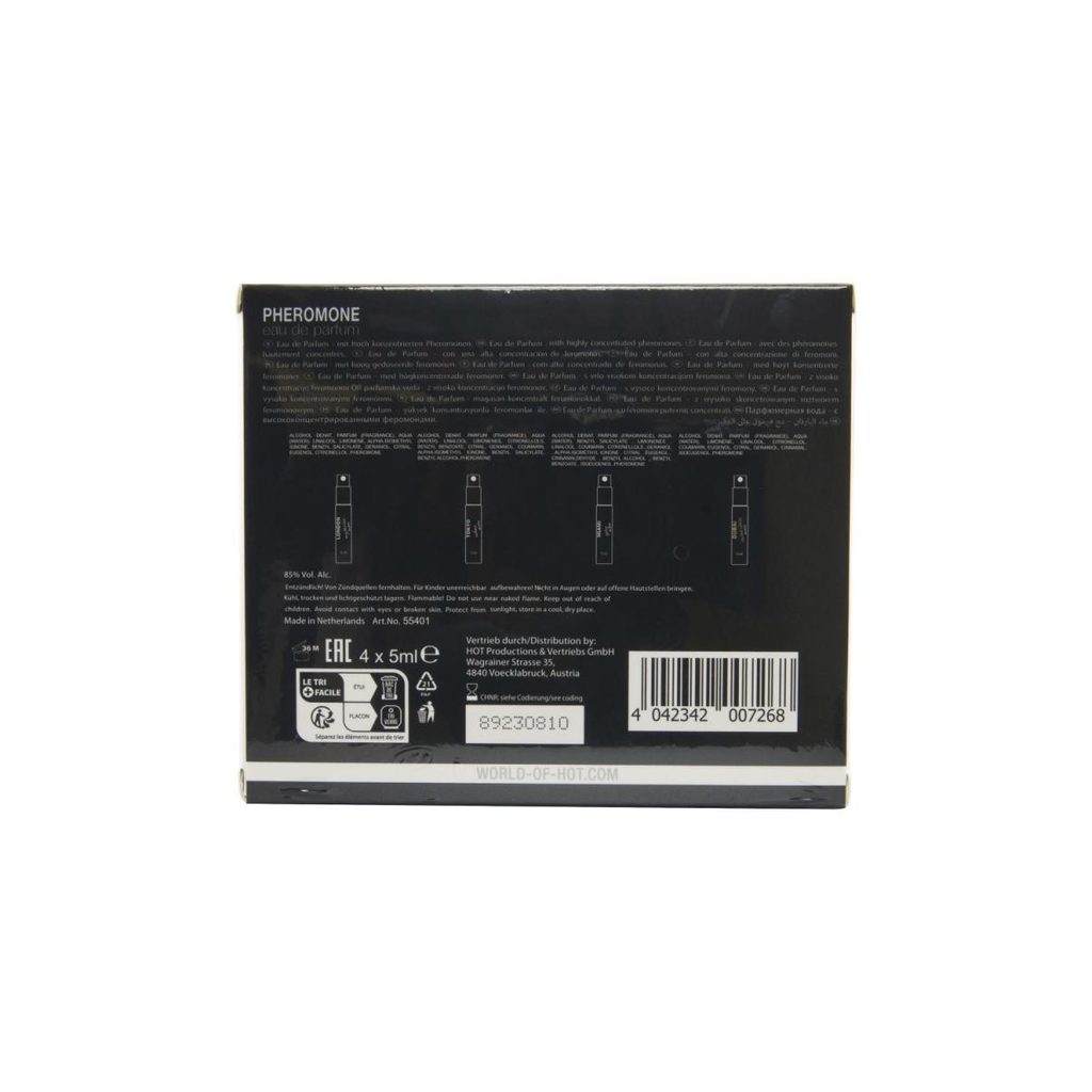 Feromoni, ki so naravni spolni atraktanti, imajo sposobnost privabljanja nasprotnega spola. Ta nova kolekcija uporablja skrbno testirano mešanico feromonov androstenola in androstenona, zaradi česar so ti parfumi edinstvena izbira. Imajo močan erotičen učinek in magično privlačijo ženske. Gre za sofisticirane parfume, ki ne le lepo dišijo, temveč tudi poudarijo moško spolno privlačnost.