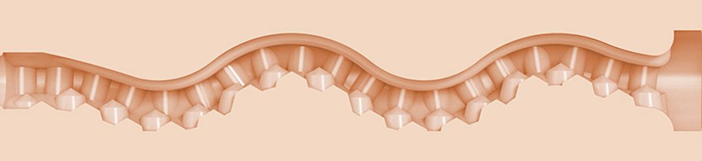 Komora se po dolžini rokava vije kot reka, ki se zvija in obrača, ko teče navzdol. Ugotovili smo, da je to zelo podobno temu, kar bi pričakovali, če bi prava Maitland Ward krožila z boki, medtem ko se premikate v in iz nje. To občutno poveča intenzivnost stimulacije, hkrati pa ostane zelo realistično.
