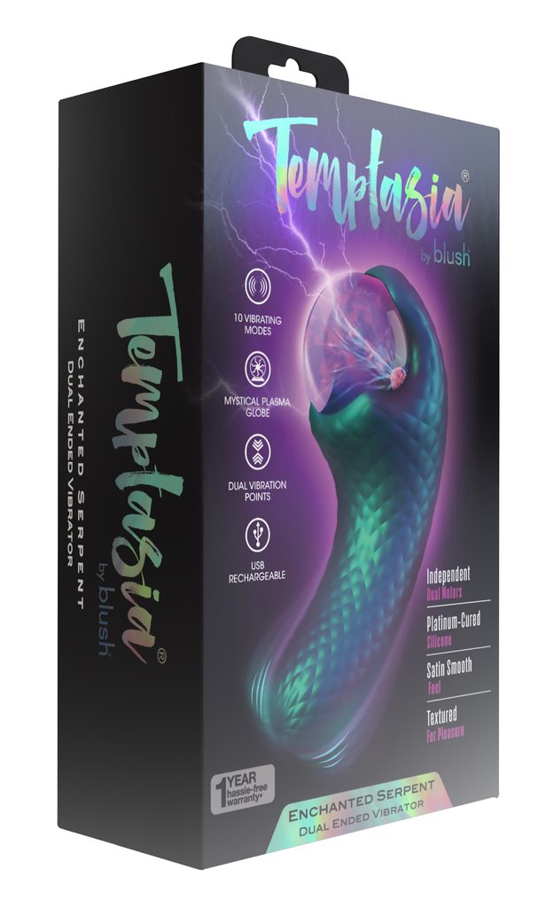 Enchanted Serpent je elegantní pulzační vibrátor, který zaujme nejen výkonem, ale i uniktním vizuálním efektem. Zabudovaná plazmová koule reaguje na dotek a vytváří podmanivou světelnou show, která dodá intimním chvílím tajemnou a hravou atmosféru. Ideální volba pro ty, kdo chtějí propojit smyslový prožitek se světelným kouzlem – obzvlášť při večerních hrách.