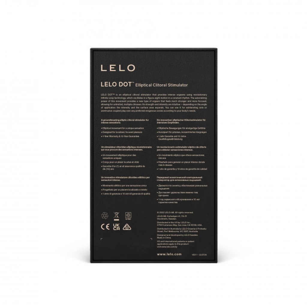 LELO DOT™ je inovativni klitoralni vibrator, optimiziran za večkratne orgazme, ki po klitorisu in tudi po drugih zunanjih erogenih območjih pošilja nove občutke – za razliko od tradicionalnih vibratorjev, ki lahko omrtvičijo področje okoli klitorisa. Zaradi tehnologije Infinite Loop™ se premika v stalnem eliptičnem gibanju, medtem ko vas mehka in upogljiva konica stimulira z absolutno natančnostjo. Vsebuje osem vzorcev užitka z različno intenzivnostjo, zapakiranih v njegovo nekonvencionalno obliko. LELO DOT™ je idealen za posameznike in pare, ki si želijo doživeti drugačen tip orgazma.