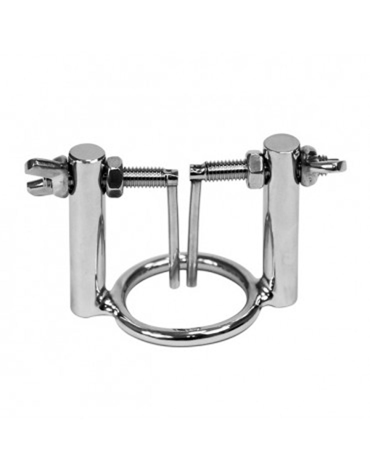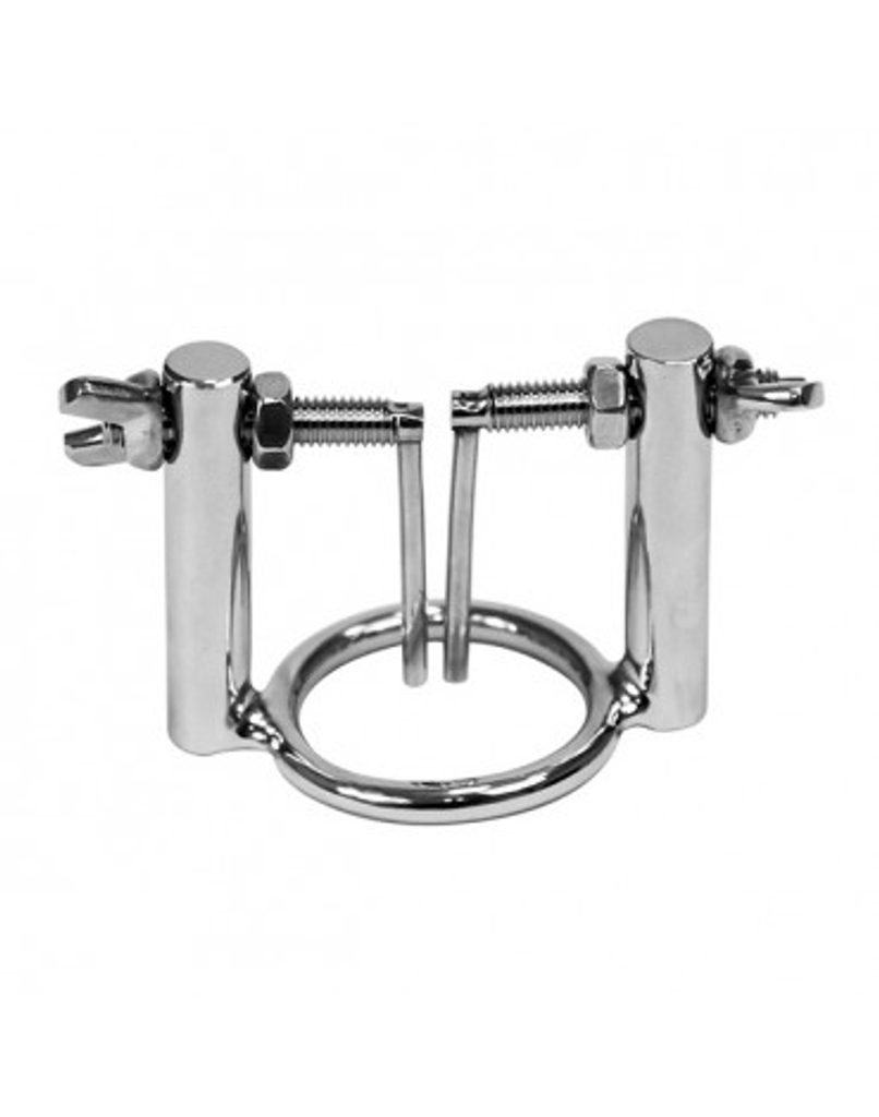 Odkrijte nove užitke s tem kovinskim odpiračem sečnice znamke Rimba. Ta pripomoček je sestavljen iz obroča s premerom 32 mm in kovinskih čepov dolžine 35 mm, kar je idealno za neomejene BDSM prakse.