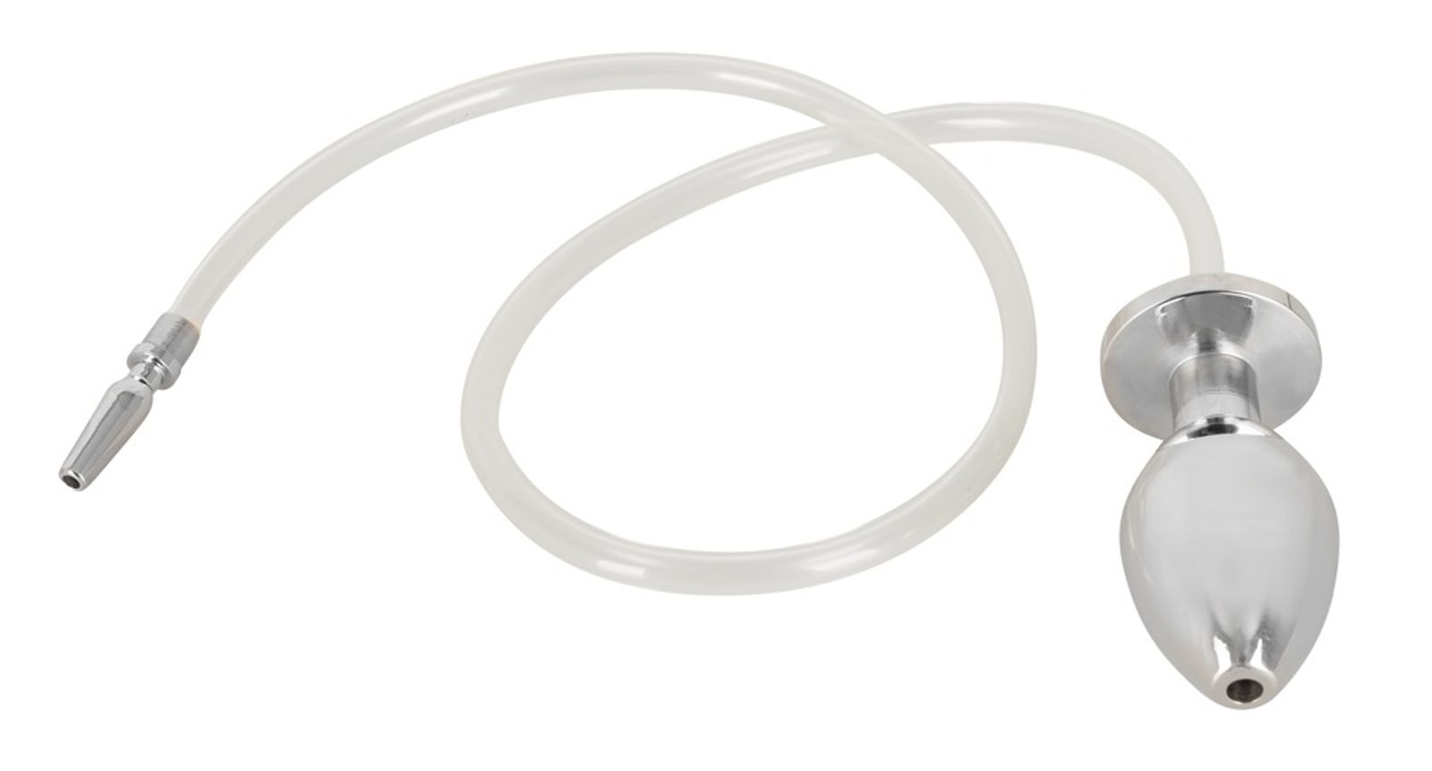 Spoznajte popolno igračo za ljubitelje piss play in drugih uretralnih/analnih iger znamke Penis Plug. Votel kovinski analni čep ima votlo cev, na katero lahko priključite fleksibilno cevko. Ta je povezana z votlim penis plugom, skozi katerega lahko urin neposredno teče v vaš anus.