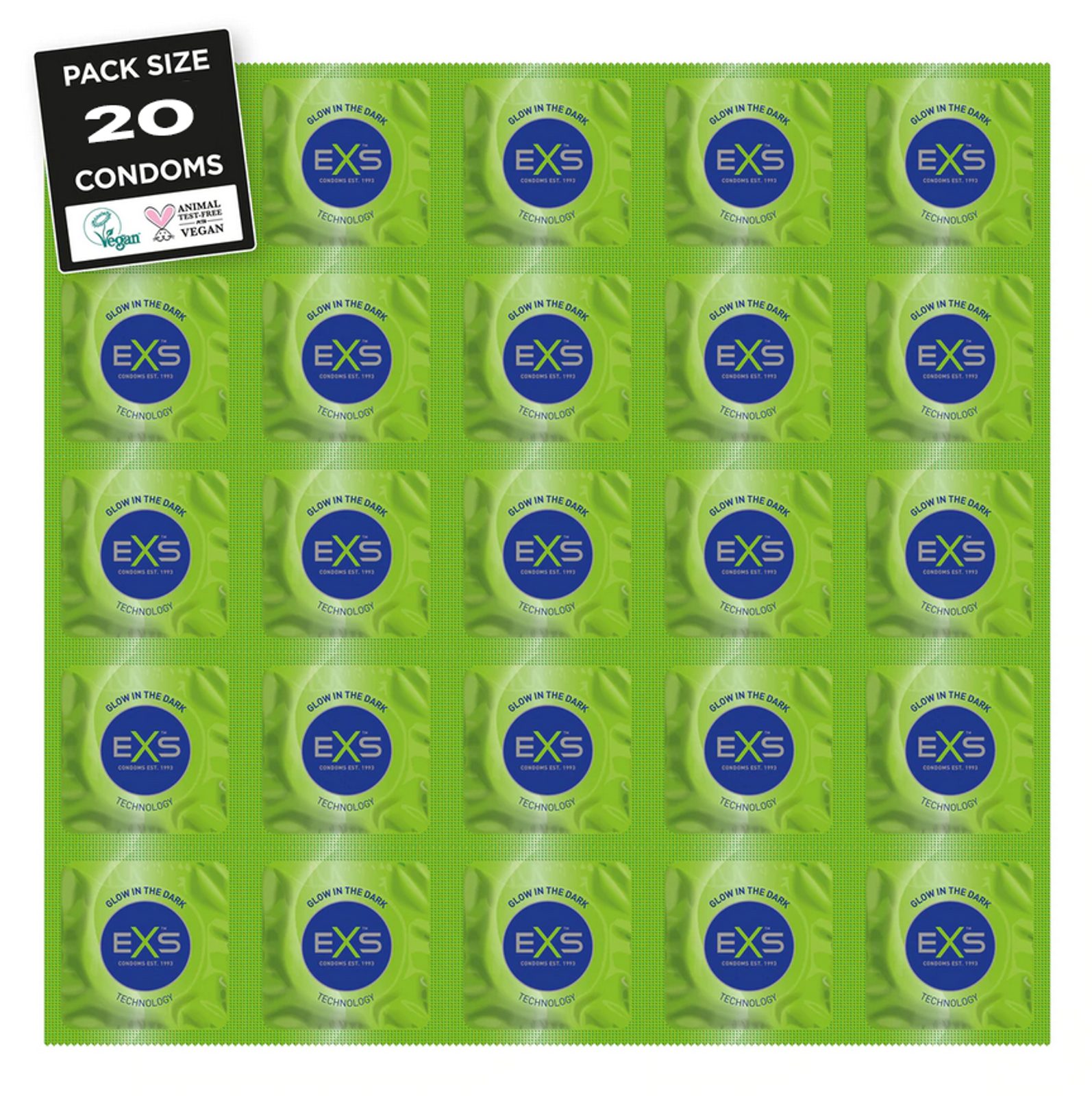 Unikaten svetleči kondom znamke EXS! Spremenite svoj penis v svetlobni meč! Fluorescenčni kondom izpostavite močni svetlobi za 30 sekund. Nataknite si svetleči kondom in osvetlite trebuh svoje partnerke. V popolni temi med seksom lahko svetleči penis uporabite kot svetilko, da najdete pravi položaj za penetracijo.