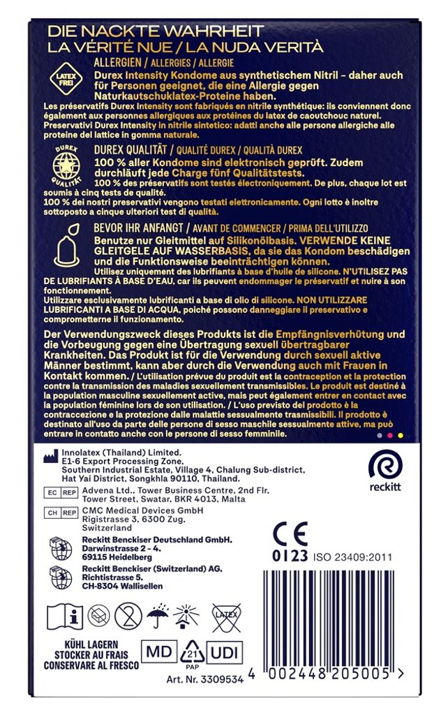 Durex Intensity XL so izjemno tanki kondomi, zasnovani za realističen doživetje brez kompromisov. Zaradi nitrilnega materiala odlično prevajajo telesno toploto in delujejo naravno – kot da med vama ne bi bilo ničesar. Večja velikost (širina 61 mm) zagotavlja udobno nošenje tudi pri daljši akciji. Silikonski lubrikant prispeva k gladkemu in prijetnemu poteku.