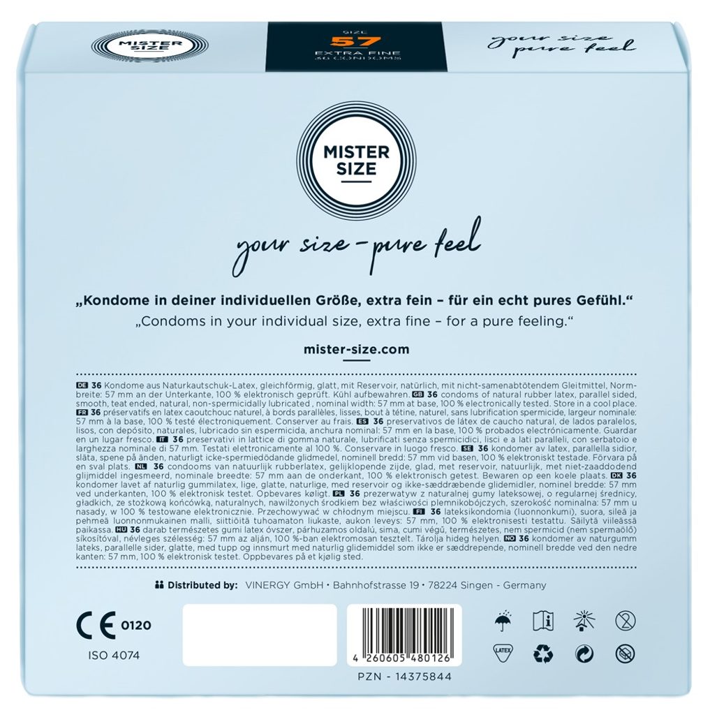 Včasih standard preprosto ni dovolj – verjetno ste to že doživeli pri seksu. Iskreno povedano ni čudno, da še niste našli svoje osebne velikosti. A od zdaj boste imeli vedno pri sebi MISTER SIZE 57. Zdaj je harmonija prava – in skupaj boste vsakič znova doživeli, kako lahkoten je lahko seks v resnici.