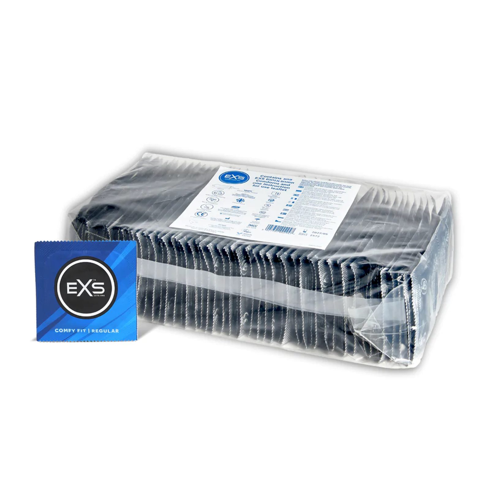 Klasičen prozoren kondom znamke EXS za varen seks. Kondomi EXS Regular so zasnovani za maksimalno udobje in hkrati učinkovitost.