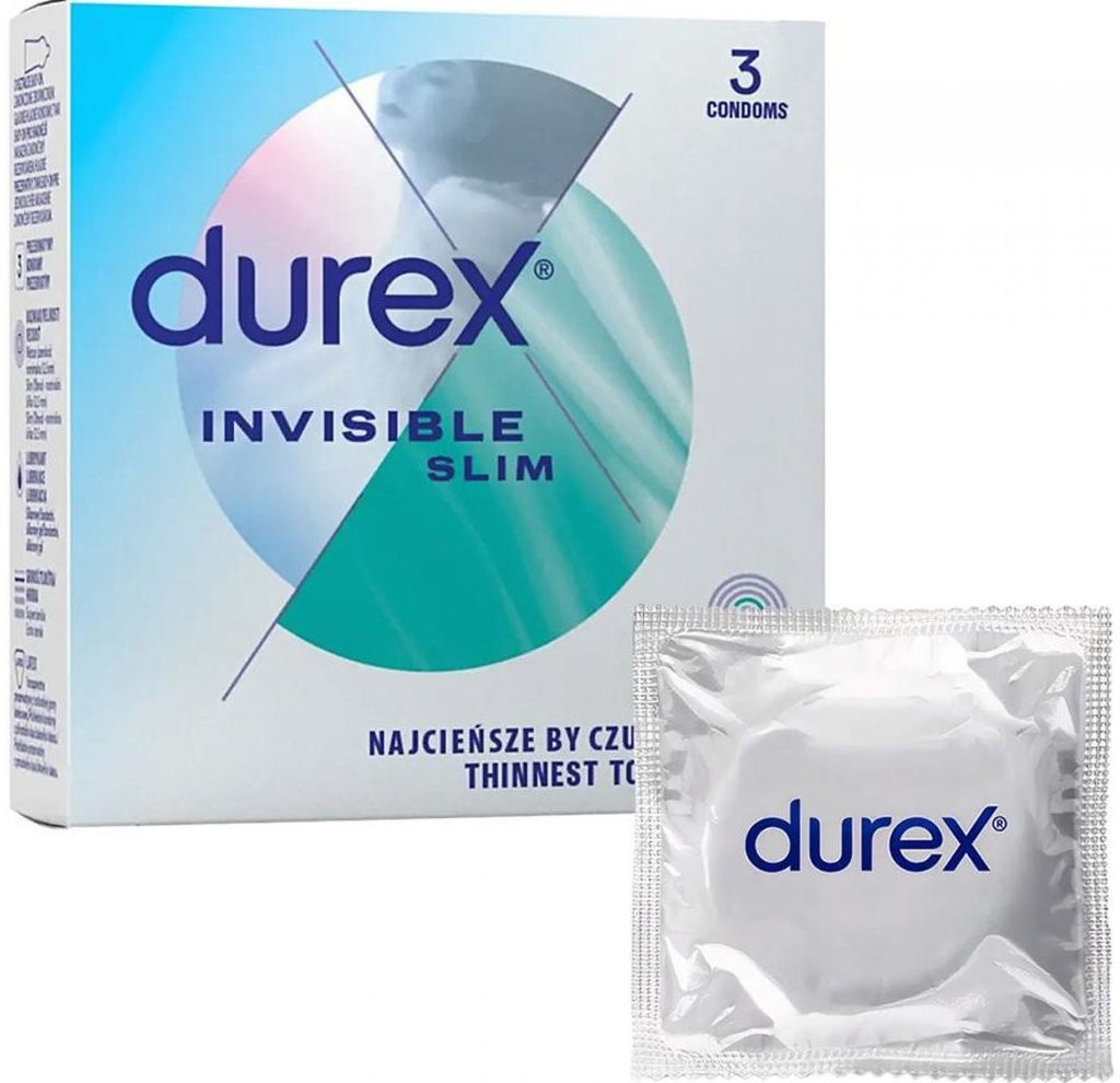 Kondomi Durex Sensual Slim (prej Invisible Slim) so medicinski pripomočki, namenjeni preprečevanju zanositve in zaščiti pred spolno prenosljivimi boleznimi. Pozorno preberite navodila za uporabo v notranjosti škatlice, zlasti če kondome uporabljate za analni ali oralni seks. Kondom je samo za enkratno uporabo. Nobena metoda kontracepcije vam ne more zagotoviti 100% zaščite pred nosečnostjo, HIV ali drugimi spolno prenosljivimi boleznimi. Hranite izven dosega otrok. Kondomi so medicinski pripomoček.