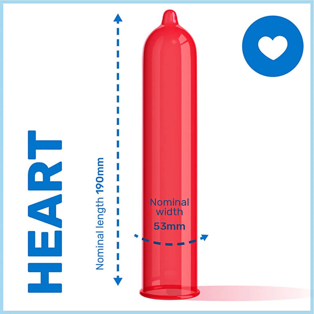 Pakirani so v unikatne srčkaste ovitke, na voljo v štirih grafičnih različicah. Njihova anatomska oblika zagotavlja enostavno nameščanje in zelo dobro prileganje penisu.