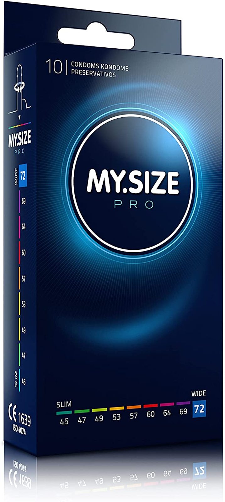 Se vam zdi, da kondom, ki bi vam popolnoma udobno pristajal, preprosto ne obstaja? Dajte priložnost kondomom MY.SIZE PRO. Izberite med kondomi MY.SIZE PRO velikost, ki vam najbolj ustreza, ter odkrijte udoben kondom in varno zaščito hkrati. MY.SIZE izpolnjuje željo po varnejšem spolnem življenju v več kot dvajsetih državah po svetu. Debelina materiala je le 0,05–0,06 mm, zato so kondomi veliko tanjši in vas ne prikrajšajo za naravne občutke. Poseben material VYTEX-lateks ima tudi bistveno manj izrazit vonj v primerjavi z običajnim vonjem lateksa.