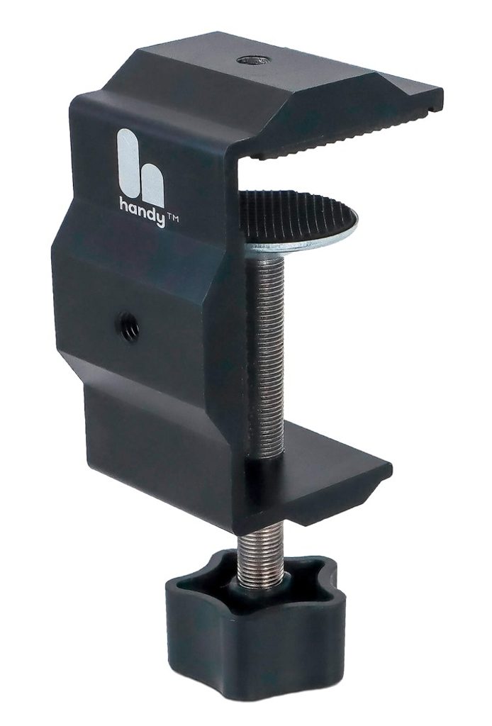 Odkrijte udobje brezdotičnega užitka s tem praktičnim, zložljivim namiznim nosilcem, namenjenim masturbatorju The Handy. Nosilec omogoča, da napravo nastavite točno tja, kjer jo potrebujete, in jo preprosto pritrdite na stabilno površino, kot je miza ali plošča. Prilagodljiva členkasta roka omogoča nastavitev idealnega kota. Gumijaste podloge zagotavljajo varno pritrditev in hkrati ščitijo površino pred poškodbami ali praskami.