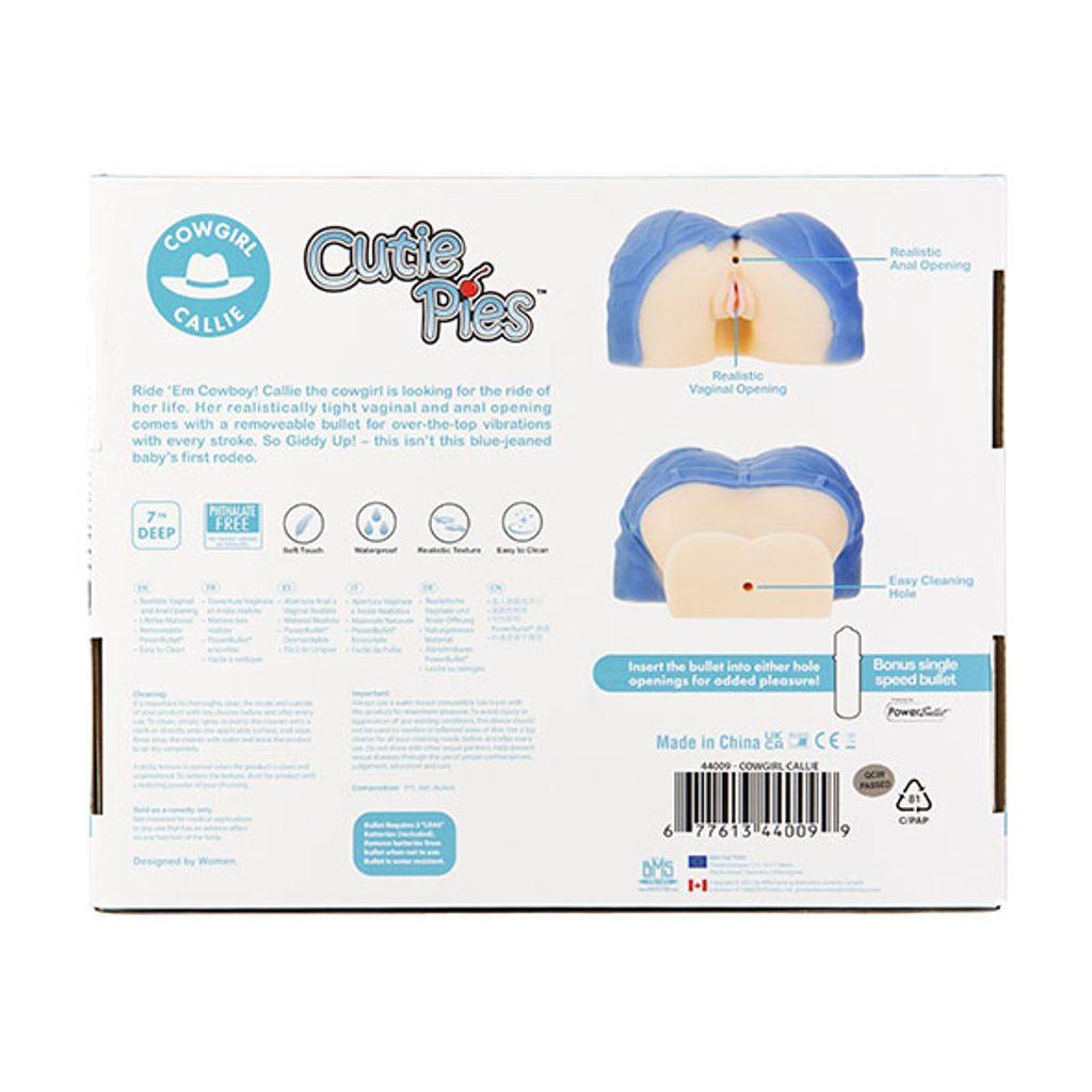 Njeni tesni vaginalni in analni odprtini sta globoki 7 palcev, imata edinstveno teksturo in odprt konec za enostavno čiščenje.