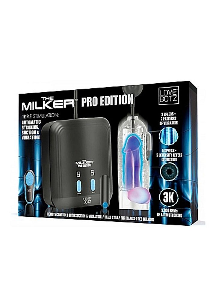 Doživite intenzivne občutke in dosezite vrhunec osebnega in seksualnega zadovoljstva z Milker Pro od Lovebotz. Izberite nastavitve vibracij med 3 hitrostmi in 7 vzorci, ki jih zagotavlja majhen, zmogljiv kroglični vibrator, pritrjen na silikonski tulec. Kroglični trak na spodnji strani tulca ga drži na mestu, medtem ko naprava sesa glavico vašega penisa z intenzivnostjo do 3000 vrt./min! Dolga, odstranljiva cev se poveže z zmogljivim motorjem, ki upravlja sesanje, na sredini pa ima tekočinsko komoro, ki preprečuje, da bi ejakulat prišel do motorja, in olajša čiščenje. Izbirajte med 5 hitrostmi in 5 vzorci sesanja za popolno stimulacijo. Če želite imeti proste roke za sprostitev, uporabite priloženi daljinski upravljalnik in po želji spreminjajte sesanje ter vzorce vibracij!