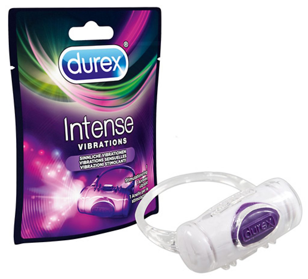 Vibracijski obroček Durex Play. Nova oblika, kar 30% močnejši, bolj elastičen in vodoodporen. Durex Play je zasnovan tako, da z vibracijami stimulira oba partnerja. Enostaven za vklop in izklop. Z nastavitvijo njegovega položaja lahko regulirate vzburjenje. Do 20 minut lahko stimulira oba partnerja z nežnim tresenjem. Podpira erekcijo, namesti se na koren penisa, možno ga je uporabljati s kondomom. Izdelek za enkratno uporabo.