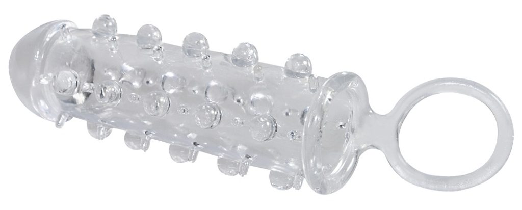Stimulativen penis navlek z izboklinami. Gelne kroglice in obroč za pritrditev čez moda. Možnost velike raztegljivosti. Ojačan vrh podaljša vaš penis za 2 cm, njegov premer pa se poveča za 1 cm.