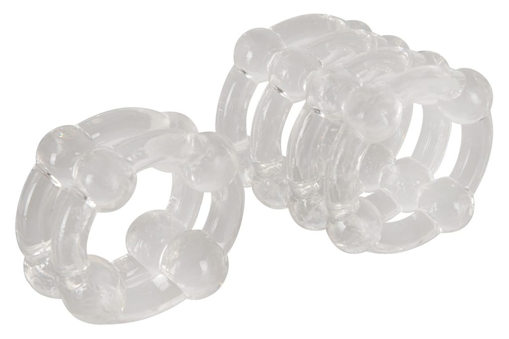 Dva prozorna obroč(a) za podaljšanje erekcije in boljšo stimulacijo partnerke. En obroček in en 4-luknjičasti prstan; obroček lahko uporabite tudi na modih.