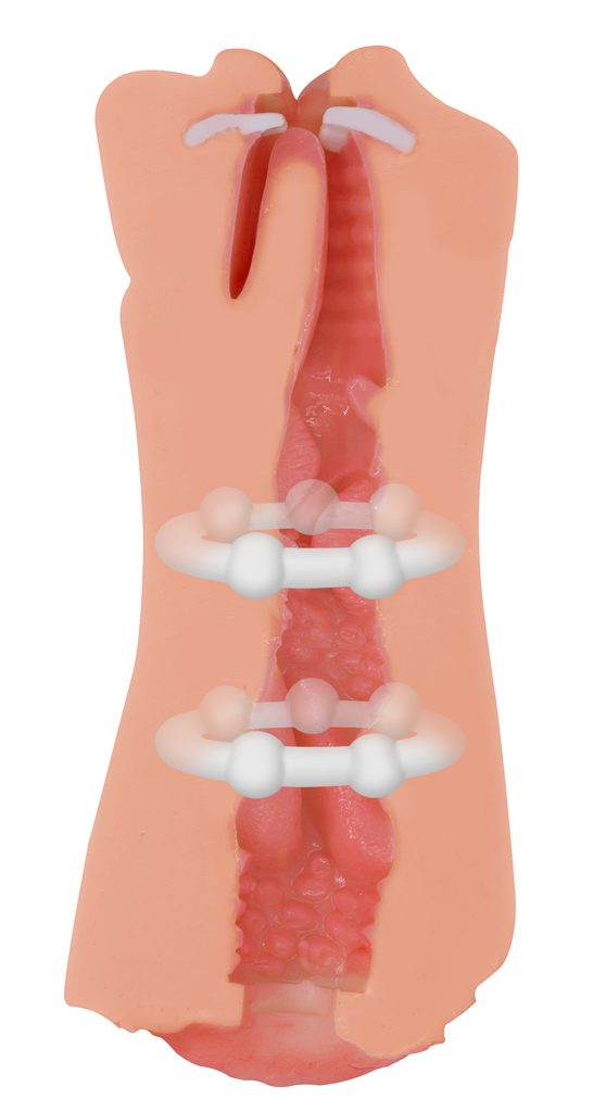 Dvojni masturbator z realističnim videzom Ta masturbator bo razveselil vsakega moškega zaradi elastične teksture in anatomsko natančne notranje zasnove. Ponuja dve ljubezenski odprtini – vagino z nežno »kurjo poltjo« in oralno odprtino z zobmi, jezikom in žlezami, ki je ročno poslikana. Zaradi tehnologije dvojnega polnjenja deluje material neverjetno realistično – na dotik je nežen, žameten in zelo prožen.