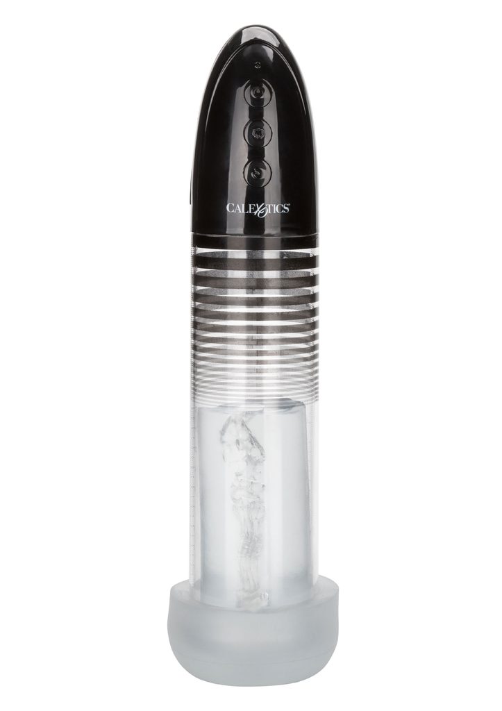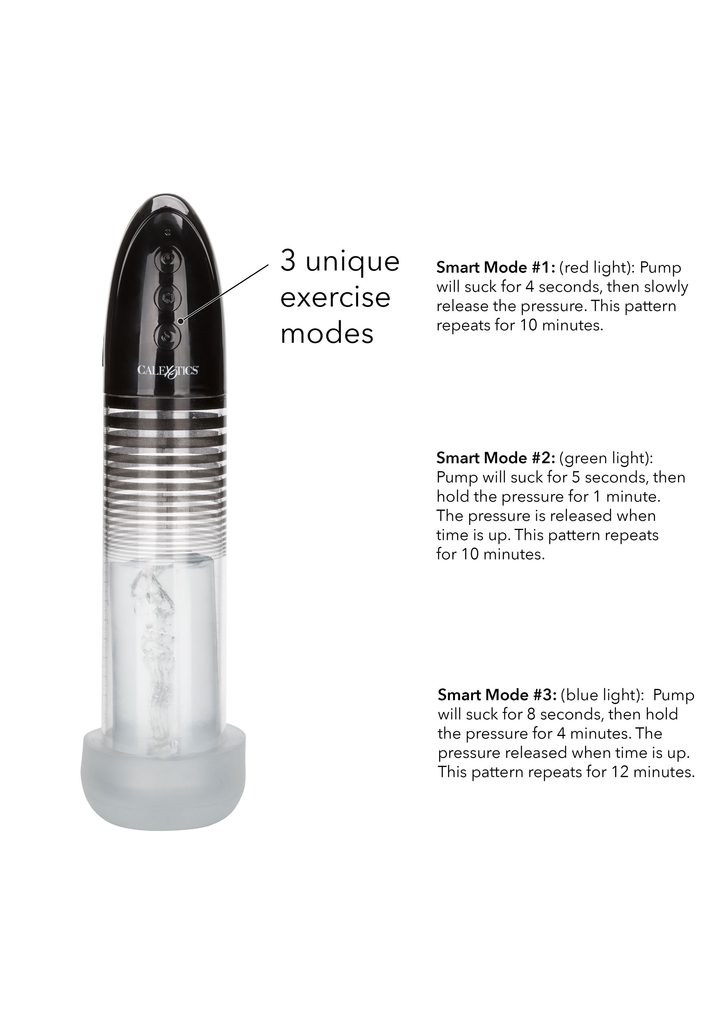 Maksimizirajte svoje orodje za užitek z avtomatsko pametno črpalko znamke CalExotics. Elegantna in vzdržljiva penis črpalka, zasnovana za odlično sesanje in izboljšanje zmogljivosti. Povečajte vzdržljivost, izboljšajte kondicijo in okrepite svoj penis s to serijo prilagodljivih vadbenih načinov (3).