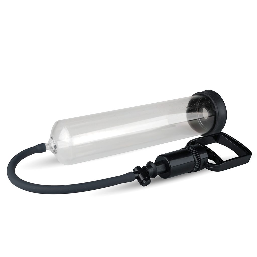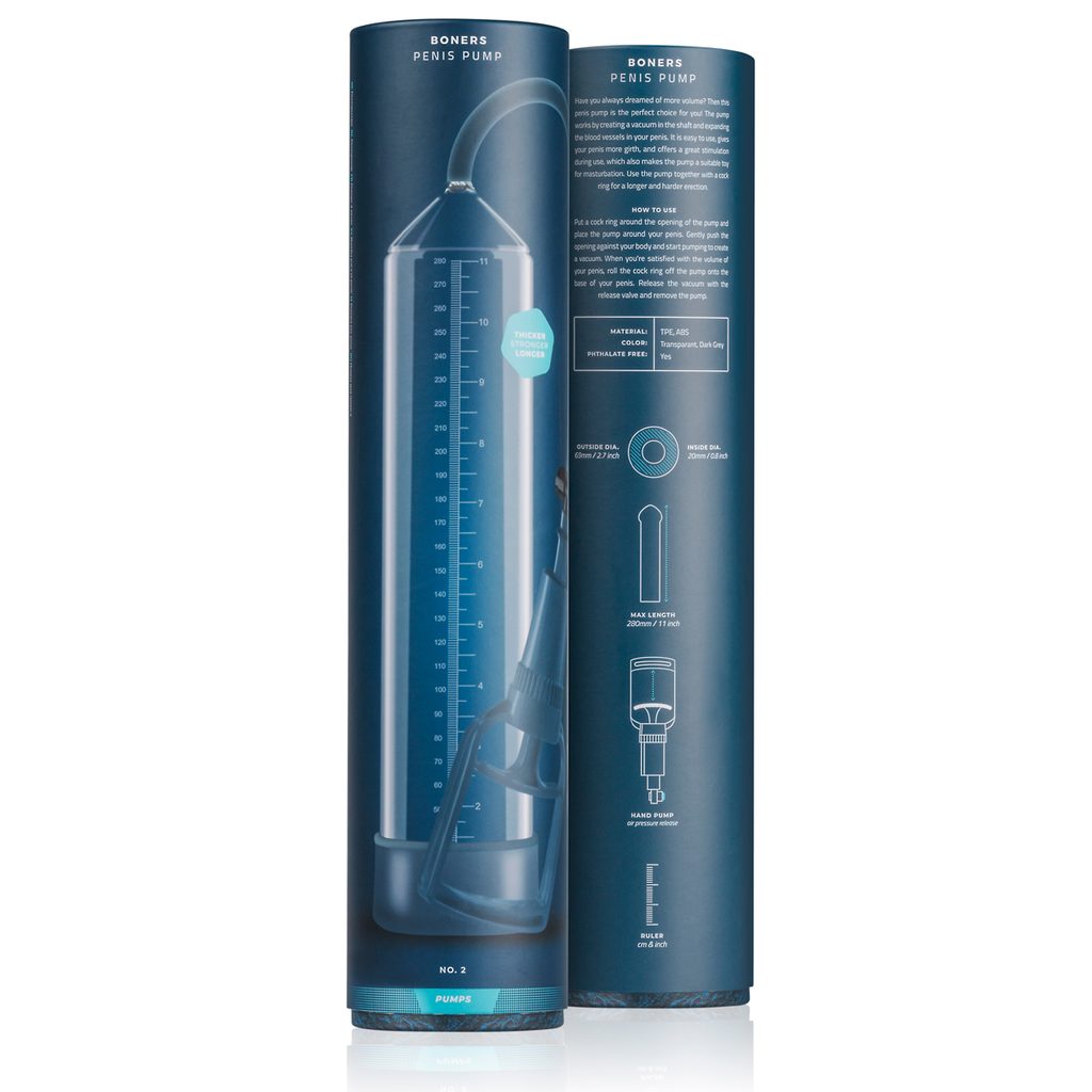 S to penisno pumpo znamke Boners dodajte svojemu penisu večji volumen. Nanesite nekaj lubrikanta na vodni osnovi v odprtino in na penis ter pustite, da penis zdrsne v notranjost. Začnite črpati s prstno pumpico in opazujte, kako vaš penis vsakič malenkost zraste. S pomočjo gumba za sprostitev zračnega tlaka lahko vakuum kadar koli sprostite. Pumpa je večje velikosti, zato je idealna za izkušenejše uporabnike.