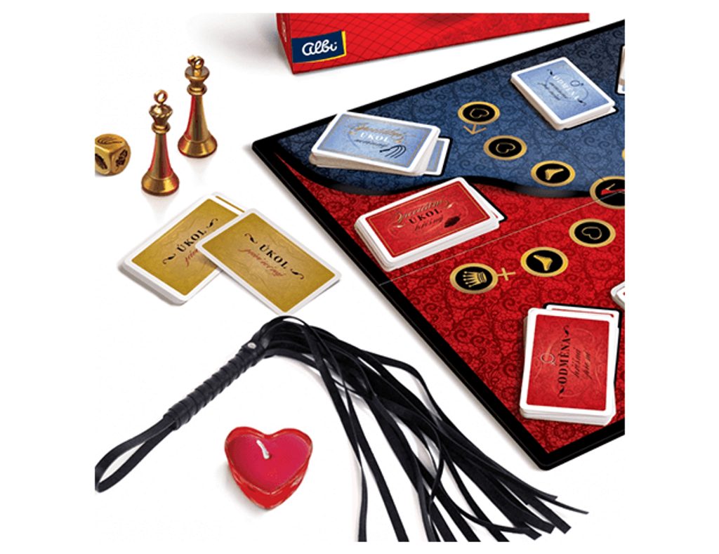 Erotična igra za pare Nevinné hrátky Deluxe. Sprostite se, ustvarite prijetno vzdušje, pripravite igralno ploščo, igralno kocko, dve figurici, kocke in doživite nekaj vznemirljivega. V igri vas čaka skupaj 364 zabavnih in erotičnih nalog. Del igre so tudi erotični pripomočki – lisice, biček, peresce in drugo.