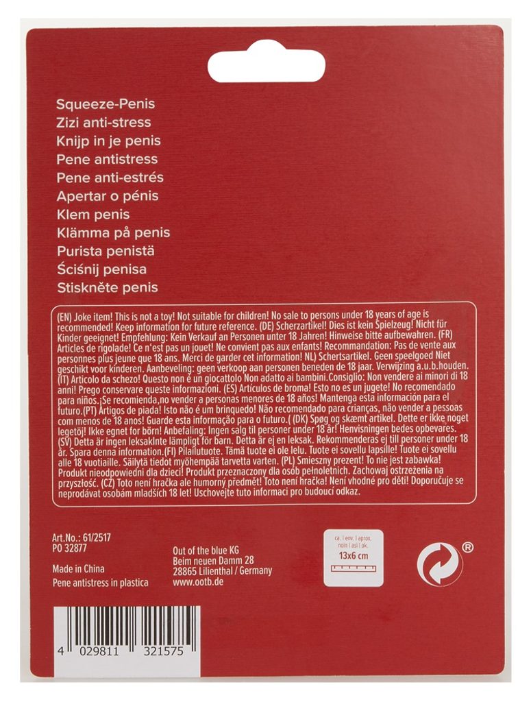 Antistresni penis za sprostitev. Dolžina: 13 cm, premer: 6 cm, teža: 202 g.