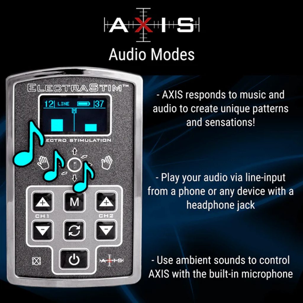 AXIS by ElectraStim je visoko specializiran elektrostimulator z dvojnim izhodom za e-stim in prvi na svetu, ki vključuje več vhodnih senzorjev za resnično prilagodljivo izkušnjo e-stima.