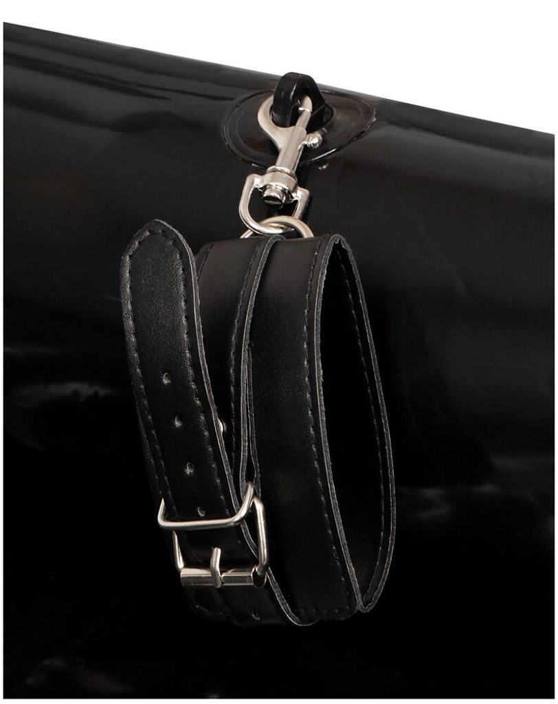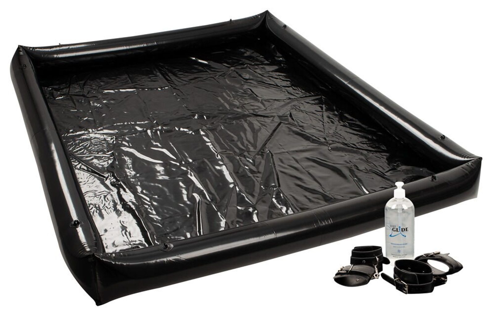 Priložene so vezi in manšete za gležnje ter tudi 1 liter lubrikanta! Črna vinilna rjuha Glossy Games znamke Fetish Collection vključuje 4 omejevalne pripomočke in 1 liter lubrikanta. Rjuha z napihljivim robom (višina 15 cm) zagotavlja popolno zaščito na kateri koli površini (npr. postelja, kavč, preproga itd.) in ponuja veliko prostora (140 x 185 cm) za ekstra mokre, oljnate, penaste, čudovito drseče igre. Ima 8 zavarjenih zank (2 v vsakem kotu) za pritrditev priloženih vezi in gleženjskih manšet s karabini – hitro in enostavno. Rjuho je mogoče tudi preprosto obrisati, kar pomeni, da je v hipu očiščena in pripravljena za naslednjo uporabo.