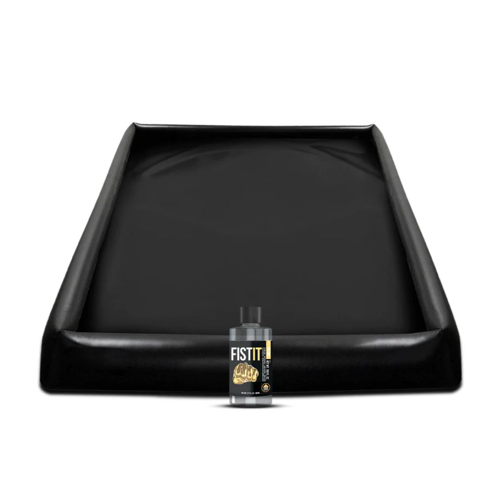 Fist It Ultra Glide Body Slide je drsna podloga z napihljivimi robovi, ki jo lahko namestiš na posteljo ali na tla. Namenjena je igram z uporabo lubrikacijskega gela in zagotavlja udobno, vodoodporno površino. Paket vsebuje koncentriran lubrikant, ki po redčenju z vodo ustvari do 5 litrov lubrikanta.