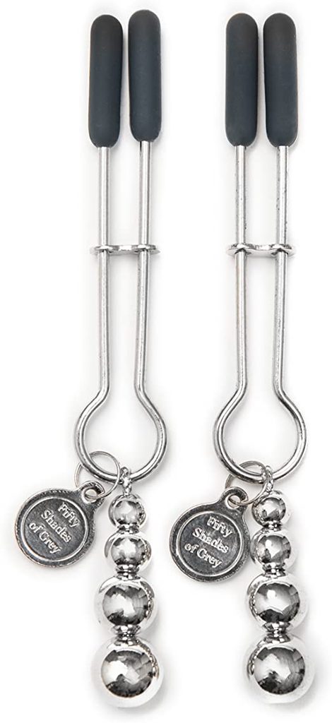 Nastavljive sponke za bradavice z okrasnimi kroglicami iz kolekcije Petdeset odtenkov sive.