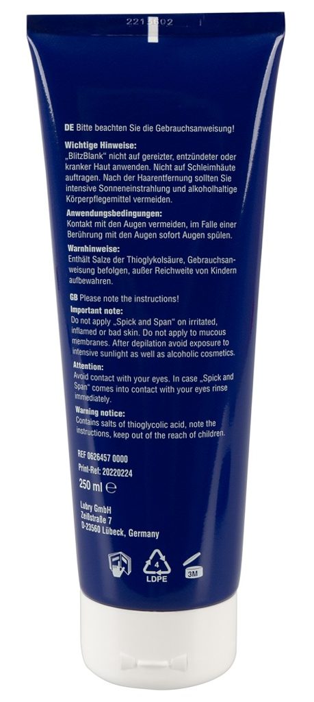 Veganski depilacijski krem BlitzBlank – gladka koža enostavno in brez draženja Želite popolnoma gladko kožo brez truda? Depilacijski krem BlitzBlank nežno in učinkovito odstrani neželene dlačice ter pusti vašo kožo žametno gladko, svežo in negovano. Njegova nežna sestava je idealna tudi za občutljivejše predele, rastlinski izvlečki pa kožo hkrati negujejo in pomirjajo.