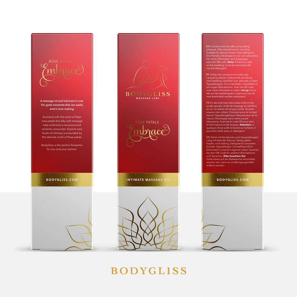 Razvajajte se s čutno masažo z BodyGliss Massage Collection! To olje lahko uporabite tudi kot lubrikant – je na silikonski osnovi in vam zagotovi neverjetno gladek drs. Zaradi čudovite stekleničke z dozirnikom in žametno nežne formule, obogatene z vitaminom E, bo poskrbelo ne le za vašo kožo, temveč tudi za vajine skupne trenutke. BodyGliss stavi na čisto silikonsko olje dimetikon v visokem deležu, zato pri uporabi drsi popolno. Raznolike dišave oljem dodajo osebnost – ene vas prijetno sprostijo, druge pa vam dodajo energijo. Olje je popolnoma združljivo z lateks kondomi.