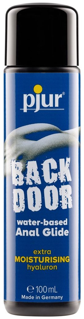 PJUR BACK DOOR Moisturising Anal Glide vsebuje hialuron, ki dobro veže vodo in ustvari gladko vodno površino ter s tem poveča lubrikacijski učinek.