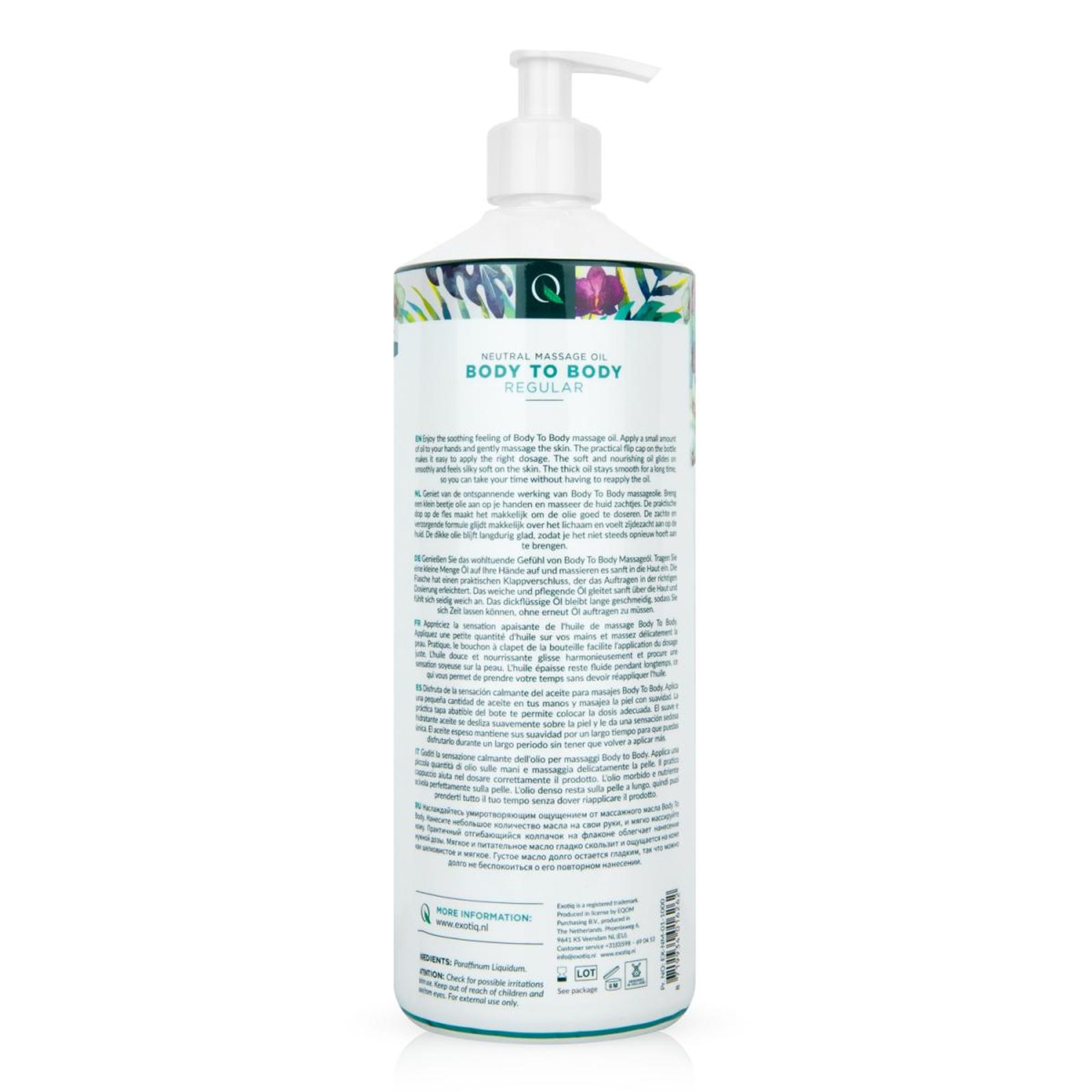 Exotiq Body To Body Oil je idealen za sprostitvene masaže. Svilnato nežno olje omogoča, da roke gladko drsijo po telesu, ter pomaga sprostiti mišice in intenzivno razvajati vsak predel. Velika plastenka ima priročen dozirni pokrovček, zato nikoli ne vzamete preveč olja. Poleg tega je Exotiq Body To Body Oil gostejši od standardnih gelov, kar zagotavlja, da dlje časa ostane drseč. Masažno olje je priljubljeno med profesionalnimi maserji.
