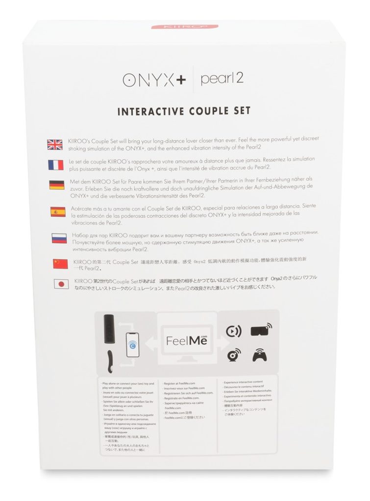 Kiiroo Onyx prinaša na internet povsem novo izkušnjo – intimni dotik. V notranji vagini Onyx je 10 stiskalnih obročkov, ki delujejo usklajeno in tako zagotavljajo občutek realnega spolnega odnosa. Vsak Onyx se lahko poveže s Kiiroo Pearl ali z drugo napravo Kiiroo Onyx ter pridobiva podatke tudi iz teh naprav. Pearl priključite na polnjenje in počakajte, da ugasne indikator, ki prikazuje popolno napolnjenost (pribl. 2 uri). Po polnem polnjenju je vibrator Pearl pripravljen na akcijo. Pred uporabo s partnerjem vklopite računalnik in se prepričajte, da je Bluetooth aktiviran. Pearl vklopite s pritiskom na gumb in se s partnerjem povežite z vnosom unikatnega PIN-a (vsaka povezava ima drug PIN). Pearl začne samodejno pošiljati podatke takoj po začetku uporabe. Za vklop vibracij enkrat pritisnite gumb na vibratorju Pearl, nato s ponovnimi pritiski prehajate med vibracijskimi načini.
