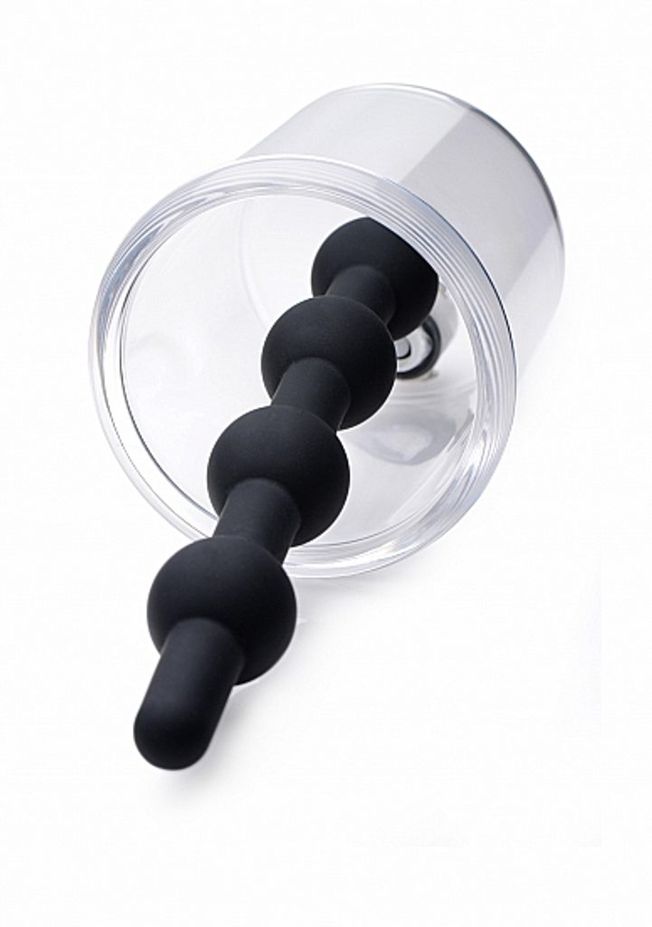 Cilinder je opremljen s silikonsko analno verižico s 4 kroglicami, ki zagotavljajo intenzivno stimulacijo. Za gladko vstavljanje čepa in dosego potrebnega vakuumskega tesnila nanesite zadostno količino lubrikanta na vodni osnovi na kroglice in rob cilindra. Vstavite verižico v anus, priključite kompatibilno cev s črpalko na cilinder in začnite črpati. Kroglice so odstranljive.