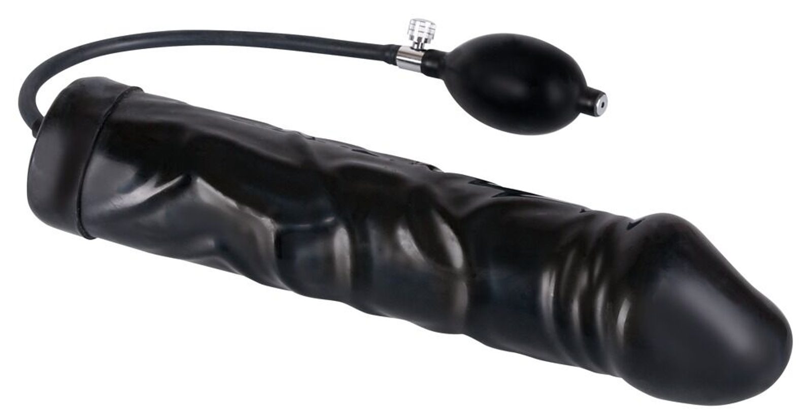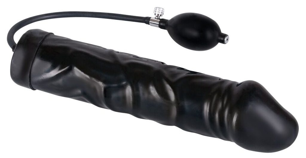 Prodoren ljubimec!Napihljiv črn lateksni dildo. Dolžina cca 20 cm, Ø 3,5–9,8 cm, dolžina cevi cca 39 cm. Z ročno pumpo in izpustnim ventilom. Material: 100 % lateks, izdelano iz naravnega lateksa, ki lahko povzroči alergije.