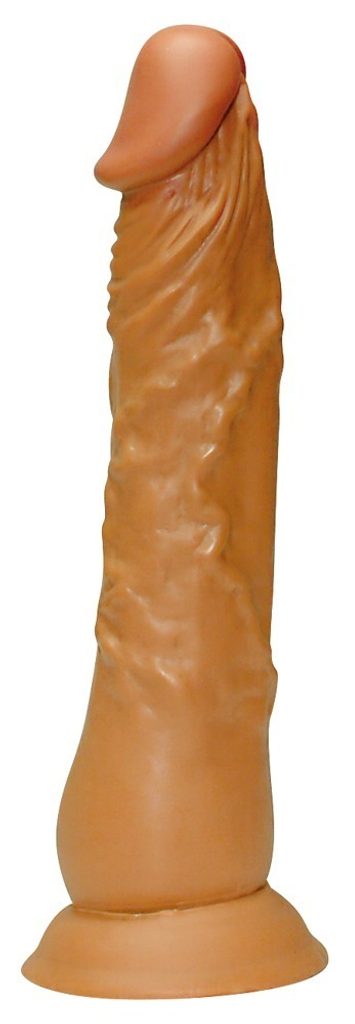 Дилдо у облику правог пениса, опремљено вакуумским постољем за постављање на равну површину или за држање у руци. Материјал је мекан и флексибилан обојени каучук у три варијанте боја (Европски, Латински, Афрички љубавник).