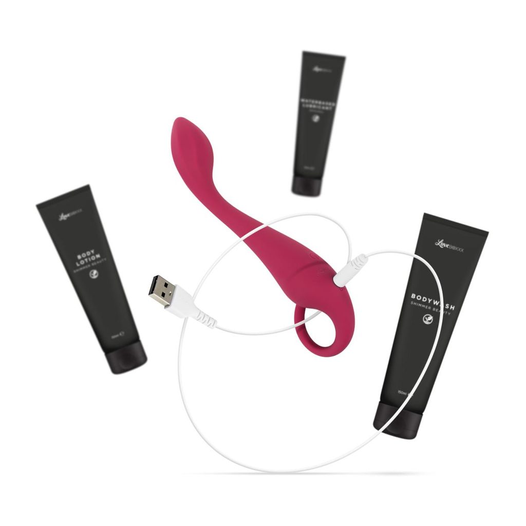 Del tega ekskluzivnega seta je vibrator za točko G, ki ga odlikujeta elegantno ukrivljen vrat in 7 različnih načinov vibracij. Vibrator je izdelan iz mehkega, nežnega silikona, ki je rahlo prožen in se popolno prilagaja vašemu telesu. Zaradi vodoodporne zasnove ga lahko uporabljate tudi v kadi ali pod prho, kar vašim intimnim igram doda novo razsežnost. Polni se prek USB (kabel je priložen), kar omogoča priročno polnjenje brez baterij.