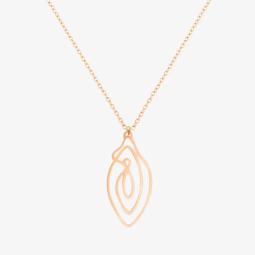 Odkrijte edinstveno ogrlico Vulvii™ – drzen kos nakita, ki se poklanja lepoti in raznolikosti ženske vulve. Nežna linijska upodobitev iz nerjavečega jekla, prevlečenega z rožnatim zlatom, deluje diskretno, a hkrati jasno izraža svojo simboliko.