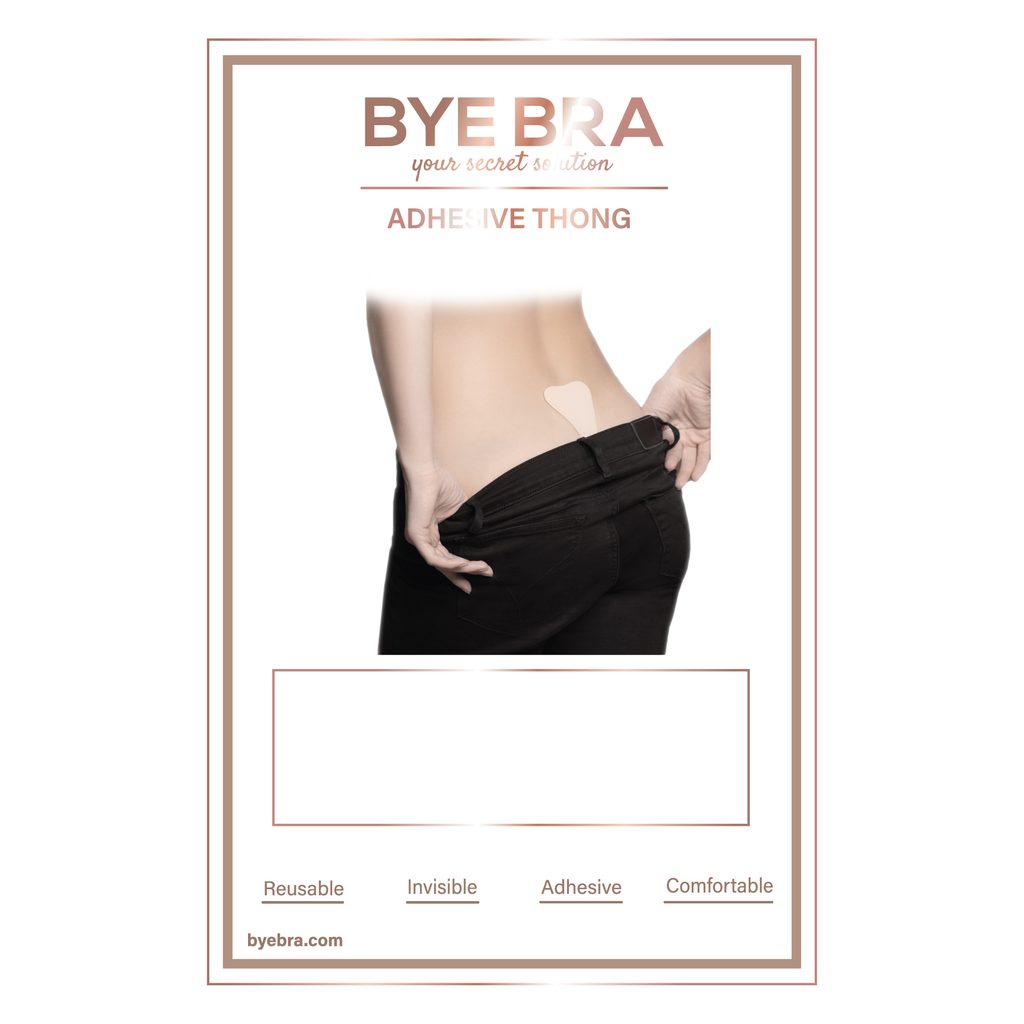 Brezšivne in nevidne pod oblečenjem, samolepilne tange se diskretno prilegajo pod katerokoli oblačilo. Zaradi mehkega materiala so zelo udobne za nošenje, silikonski gel na sprednji in zadnji strani pa varno poskrbi za stabilen položaj tang in vam daje samozavest. To so tange znamke Bye Bra.